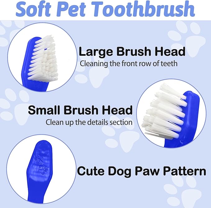 - Dual Head Curved Design for Effective Cleaning: Each dog toothbrush features a dual head curved design, with a larger brush head suitable for larger animals' mouths and a smaller brush head for small animals.The curved angle helps you to clean your pet's teeth deeply and keep their mouth clean, ensuring optimal oral hygiene for your pets