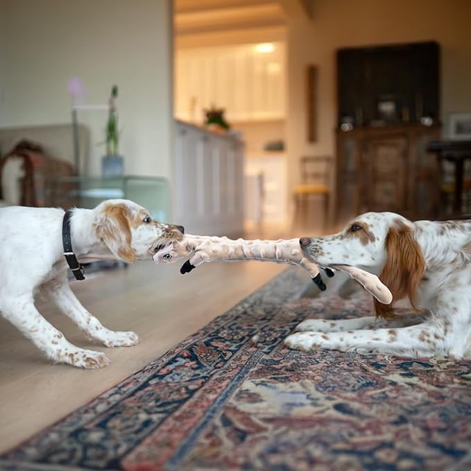 - Soft Dog Toys, Cuddle Buddy: Get your furry friend the snuggle partner NOW! This furry animal dog toy is not only safe for pets, but also gentler on their teeth, gums, and dental health as teething toys. When the dog is alone at home, it will feel at ease because of this soft and comfortable toy. Have a feeling of peace of mind, warm embrace and company that never leaves.Large dog plush toy is suitable for all breeds like Chihuahuas, Corgis, Pomeranians and Poodles
