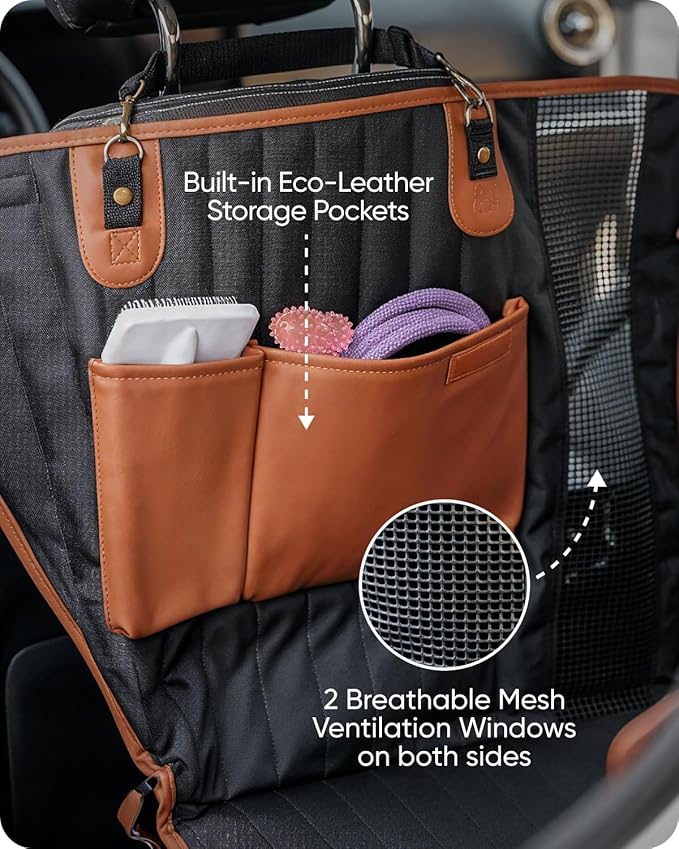 - SUPER STURDY DESIGN: Our backseat extender for dogs is crafted with waterproof 600D Oxford. Back seat pet cover for dogs is upgraded with eco-leather, and metal fastenings. Dog hammock with hard bottom - Owleys back seat cover for dogs it is durable to offer the ultimate protection!