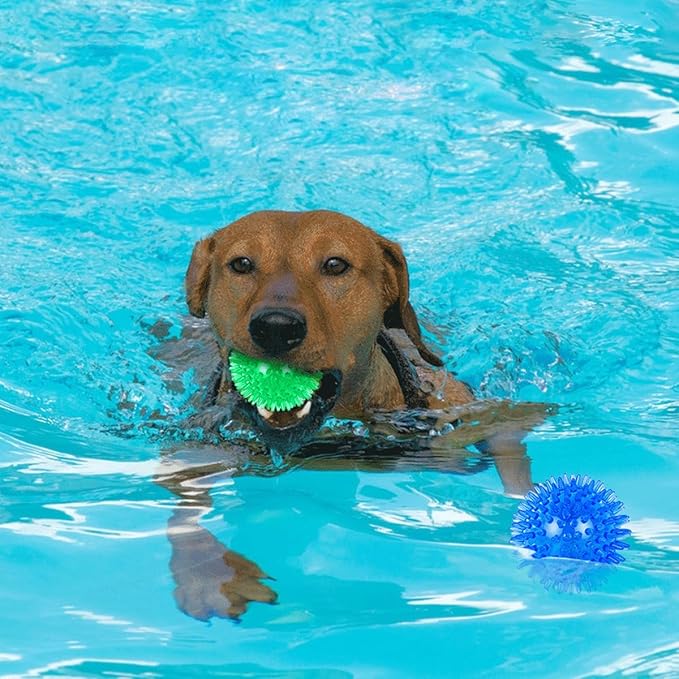 - SQUEAKY BALLS FOR DOGS: Feature a internal squeaker, hidden deeply, that means dogs are hardly to squeeze it out, no choking hazard when chewing or playing. No matter how your dog bites, spiky balls will continue to make a cute sound, not too loud, but still get dogs’ attention.