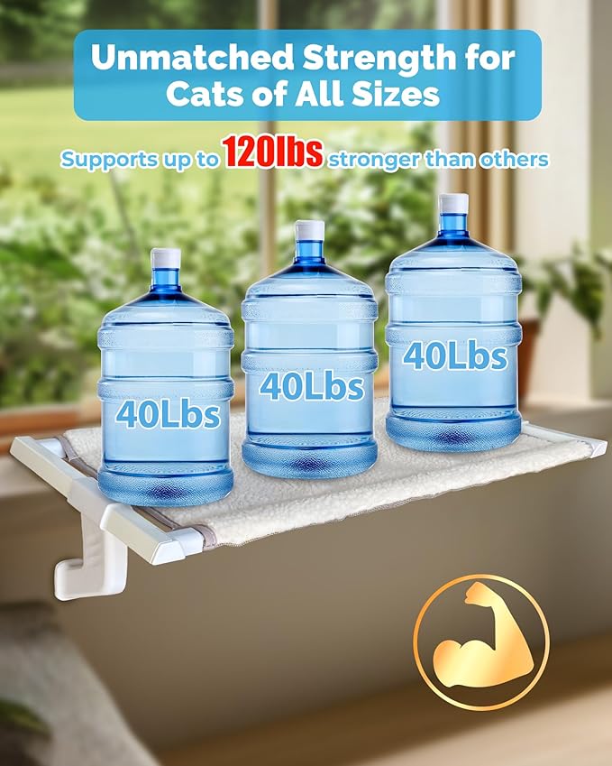 - Ultimate Strength & Durability: Engineered with extra-thick, all-metal rods, our cat window perch supports up to 120 lbs, making it perfect for large cats or multi-cat households. This cat window hammock is built to withstand everyday use, offering a stable and secure resting place for your feline to enjoy the view from the cat window shelf.