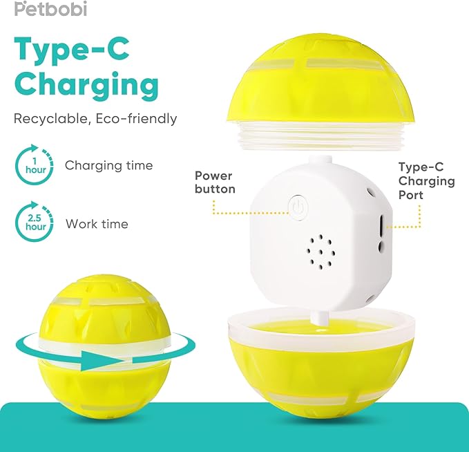 - Efficient Charging for Endless Play: Petbobi automatic dog ball toy's Type-C rechargeable design is both convenient and economical, ensuring quick charges and maximum playtime for your dog