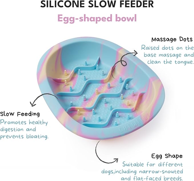 - Promotes Healthy Eating: The CHEWFFON slow feeder features a unique design with massage dots that separate food, extending mealtime and promoting healthier digestion. These help prevent gulping and potential choking hazards, making mealtime more enjoyable for your pet