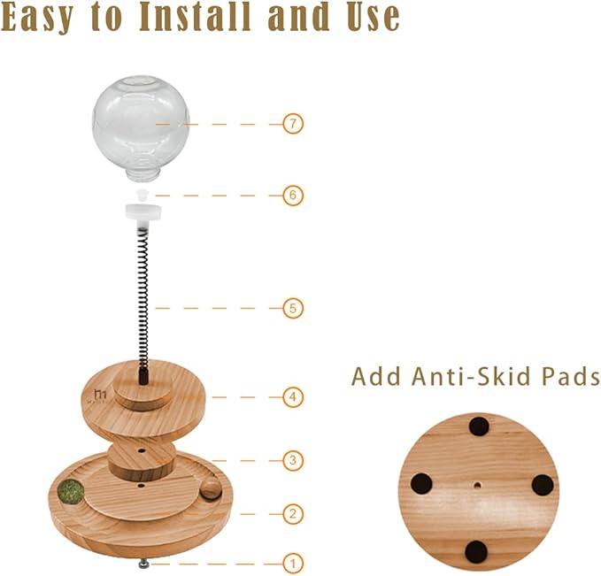 - Wood Track Ball: This cat ball toy is made of sturdy and durable wood, no matter how hard your cats scratch the wooden balls, this cat ball tower will not fly out, suitable for long-term cat supplies for indoor cats