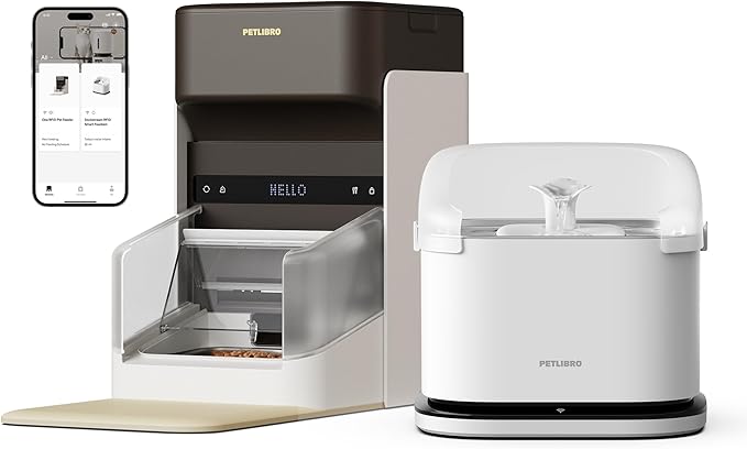 Bundle of PETLIBRO RFID Smart App Cat Water Fountain, 3L Dockstream Fountain with Collar Tag, 2.4G Wi-Fi + PETLIBRO RFID Automatic Cat Feeder, 5G Wi-Fi Automatic Feeder, 3L Feeder with Collar Tag,