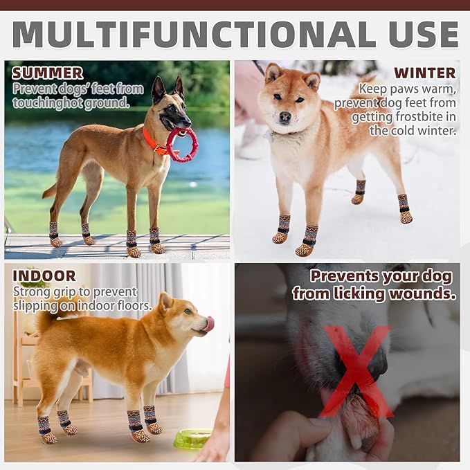 - MULTIFUNCTIONAL: Suitable for small medium large dogs, prevents your dog from licking wounds, from getting burned on the hot pavement in summer, and from getting frostbite in the cold winter. More comfortable than boots, shoes, or paw pads. In addition, it prevents naughty dogs from scratching the sofa and floor. A Practical dog sock Gift!