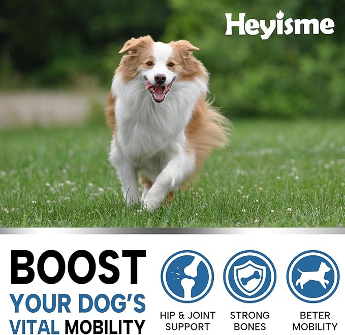- Comprehensive Hip & Joint Support: Enriched with glucosamine and chondroitin, HEYISME glucosamine for dogs advanced formula promotes healthy hips and joints, helping to reduce stiffness and enhance overall joint vitality in dogs of all sizes. Everyday essential cosequin for dogs.