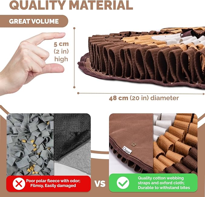 - DIGESTION AND MENTAL STIMULATION - This dog snuffle mat turns treat time into an adventure, engaging senses and slowing eating pace. It also encourages your dog's natural foraging instincts and stimulation.