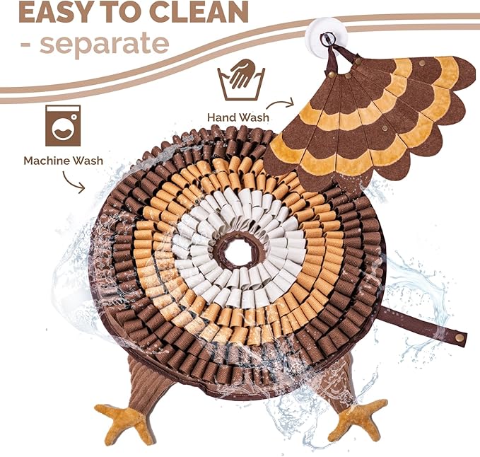 POPUPJOYS Durable Hide & Seek Snuffle Mat for Dogs, 2-in-1 Enrichment Puzzle Toy with Detachable Tail & Squeaker, Adjustable Difficulty Level with Suction, Machine Washable, Gift-Ready (Turkey)