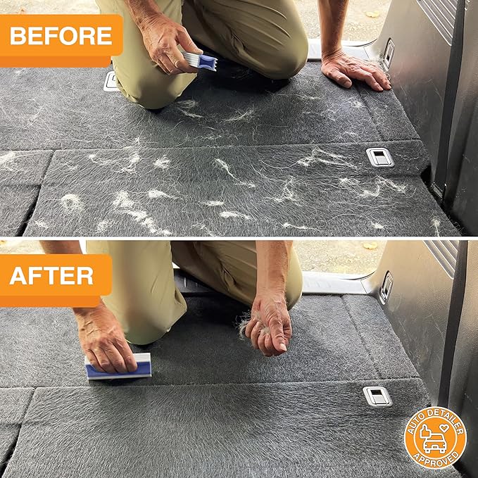 - 3 TOOLS IN 1 & MADE IN THE USA - The FurDozer X3 has 2 different ridged sides and 1 squeegee blade. Having all these different edges in a comfortable and compact design makes the FurDozer your go-to pet hair removal tool and auto detailing tool. The FurDozer is designed and manufactured in the USA! *Not for use on pets.*