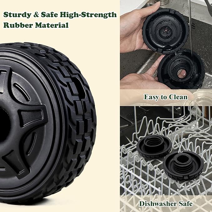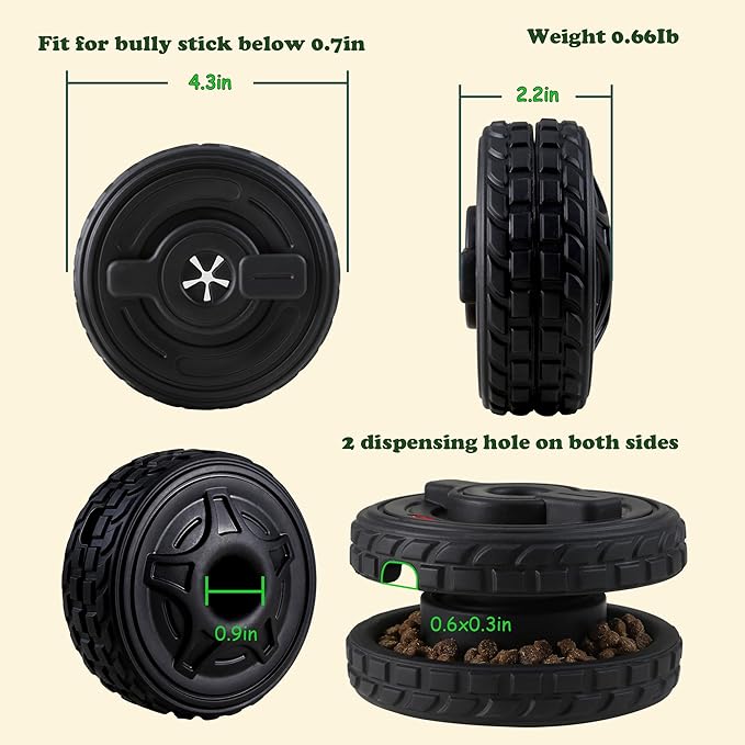 - KEEP YOUR DOG ENGAGED WITH 3-IN-1 VERSATILITY: This heavy-duty dog toy combines three interactive functions in one: a durable chew toy for aggressive chewers, a bully stick holder, and a treat-dispensing puzzle toy. Unscrew the threaded tire to stuff kibble or freeze peanut butter/yogurt in the silicone mold for a long-lasting frozen enrichment activity. The dual treat holes challenge your pup’s problem-solving skills while rewarding them with surprises