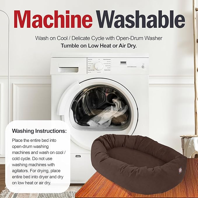 Majestic Pet 24 Inch Suede Shredded Memory Foam Mix Calming Small Dog Bed Washable 24 x 19 x 7 (Inch) - Cozy Soft Round Donut Dog Bed with Spine for Head Support - Pet Bed Chocolate