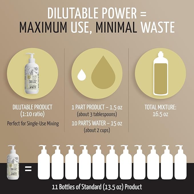 - Safe for Everyday Care: Is made in the EU; comes in a 13.5 fl oz bottle and is perfect for regular use; dilutable 1:10 makes around 45 small dog washes; an ideal fit for your puppy supplies, yorkie puppy essentials, puppy stuff, or dog accessories girl grooming kits