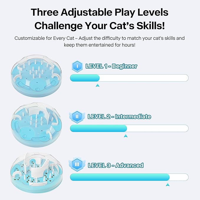 - Multi-Level Challenge for Endless Fun: Engage your cat’s natural instincts with this interactive cat puzzle toy featuring 3 adjustable difficulty levels (easy, medium, hard). Perfect for novice kittens and experienced cats, the modular design grows with your pet’s skills, promoting cognitive development and sensory stimulation. Each level rewards cats with Churu lickable treats, Sheba pate, or dry kibble (compatible with Purina One, Fancy Feast, Blue Buffalo, and more), turning mealtime into a brain-boosting game!