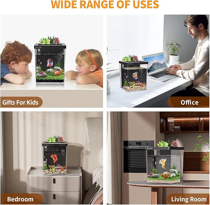 - Adjustable Light Color: This is a smart aquarium that allows you to adjust the color of the light. You can choose red, orange, yellow, green, blue, purple and other light colors