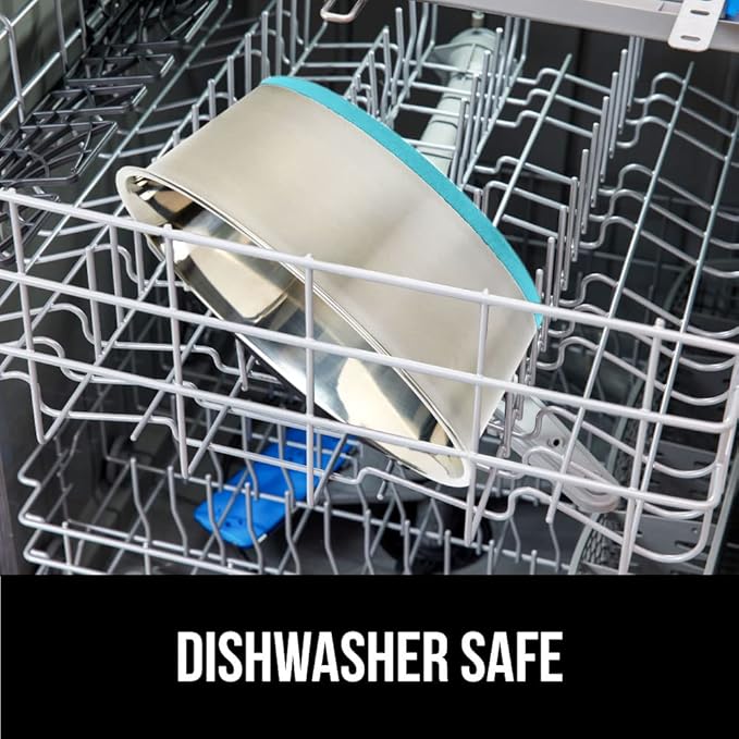 GORILLA GRIP Set of 2 Dog Bowls, Heavy Duty Metal Food and Water Bowl for Feeding Dogs and Cats, Dishwasher Safe, Rust Resistant Stainless Steel, BPA Free Rubber Base, Holds 1 Cup (8 fl oz), Turquoise