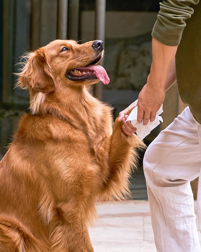 - Soft Pearl Cotton Wipes: Dog wipes for paw and butt are made of high-quality 100% biodegradable plant fiber, soft and skin-friendly, larger, thicker and more moist, easy to hold and use, even long-term use will not hurt your pet's fur. Pearl cotton textured wipes help improve cleaning power.