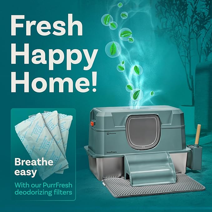 - 【Odor Control Carbon Filter System】 Built-in odor filter and included PurrFresh carbon bags help neutralize smells naturally. Replace every 3–5 days for maximum freshness and a cleaner-smelling home.