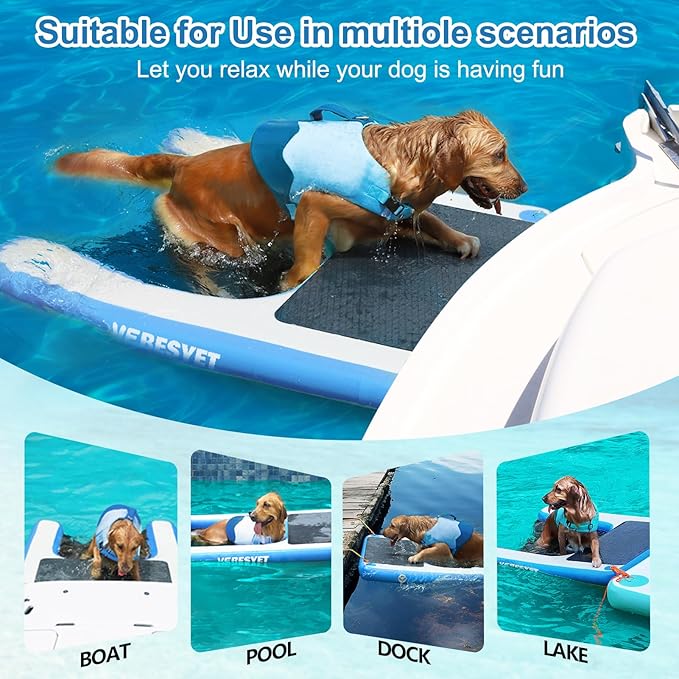 - 【Wide Application】The inflatable dog boat is suitable for all types of pools, docks and boats, even pontoon boats! It's the perfect dog boat ladder, dog pool ramp or above ground dog pool ramp, perfect for all swimming environments for fun water play.