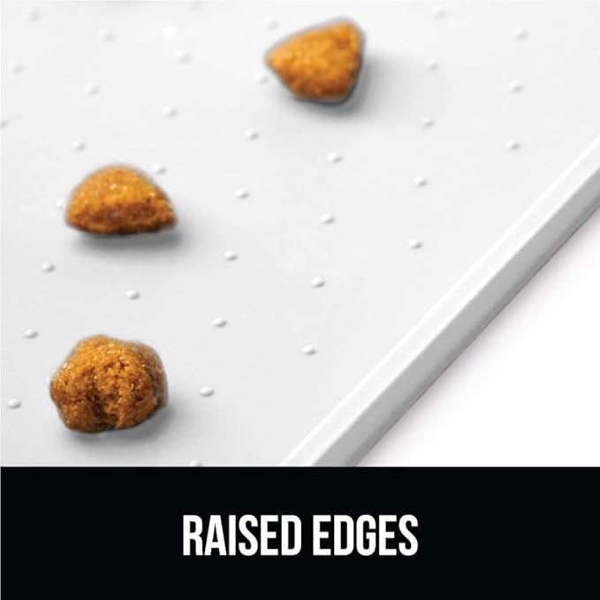 GORILLA GRIP 100% Waterproof Raised Edge BPA Free Silicone Pet Feeding Mat, Dog Cat Food Mats Contain Spills Protects Floors, Placemats for Cats and Dogs Water Bowl, Pets Accessories 32x24 White
