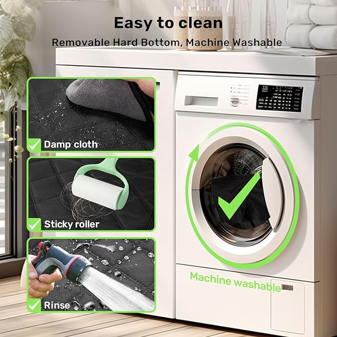 - [Easy to Clean & Maintain] Made with ultra-easy-clean materials, this dog seat cover is a breeze to maintain. Simply wipe with a damp cloth, vacuum, or rinse as needed. For deeper cleaning, detach the hardboard base for a quick machine wash. Keep it fresh and spotless with minimal effort!