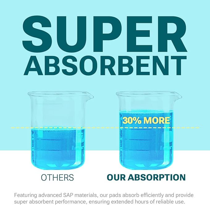 - Ultra-Absorbent Core - 30% Faster: Advanced SAP tech absorbs liquid 30% faster than standard pads, providing up to 12 hours of reliable, leak-free protection.