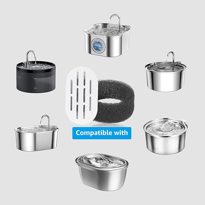 - Compatible - The cat water fountain filters are ompatible with most stainless steel cat water fountain. Please check whether it is compatible with your cat water fountains before purchasing to avoid purchasing errors.