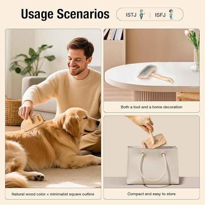 - Minimalist Aesthetics + a Must-Have for Modern Homes: The square brush head and hand-polished maple leaf emblem complement each other. It is not only an efficient brushing tool, but also a good home decoration, adding a touch of texture aesthetics to your pet care space.