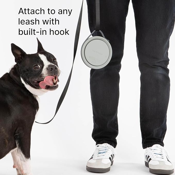 - CLEVER AWARD WINNING DESIGN - The unique splash guard rim helps prevent spills, while the built-in hook with snap allows easy attachment to a leash or bag for quick access during walks or adventures. Award Winning Design (un Design Award, 2025).