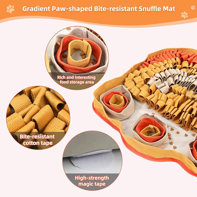 - Funny Dog Snuffle Mat: The dog snuffle mat is shaped like a paw and looks even cuter. This activity mat is not only cute but also practical. Interesting puzzles are all over the mat, and they all meet the function of hiding food, which can effectively fit the hobbies of dogs