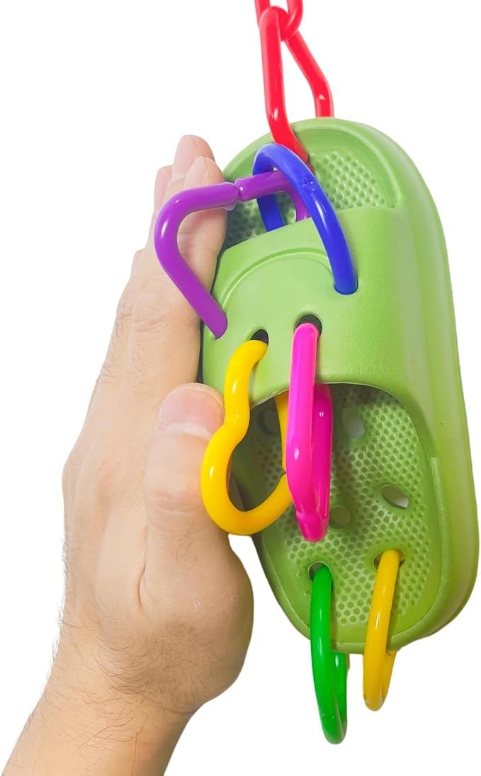 - Safe and Sturdy Design: Built to last, these toys feature thick metal safety rings, durable 1.75-inch bagels, colorful elastic slippers, and tough clasps. Every part is carefully crafted for quality, making them ideal large bird toys and parrot toys for medium birds