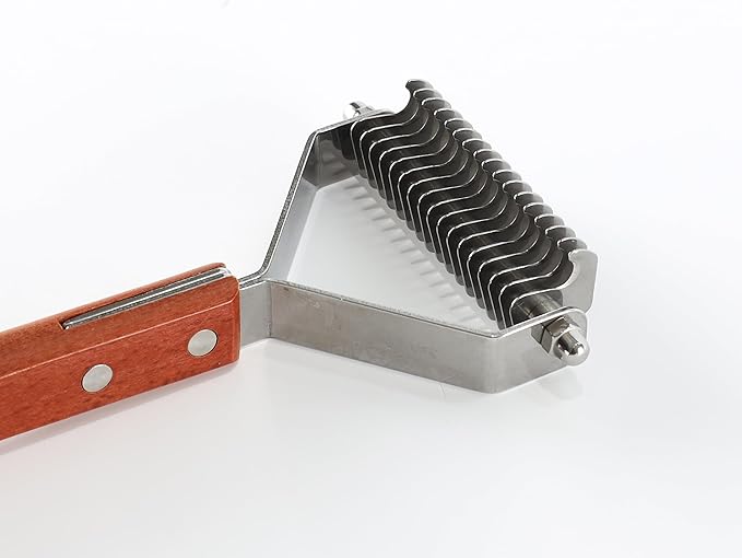 Dog Undercoat Rake Cat Grooming Rake with Wooden Handle Dematting Undercoat Brush for Medium Hair Coat Rake for Dogs Knot Removal and Shedding Control L
