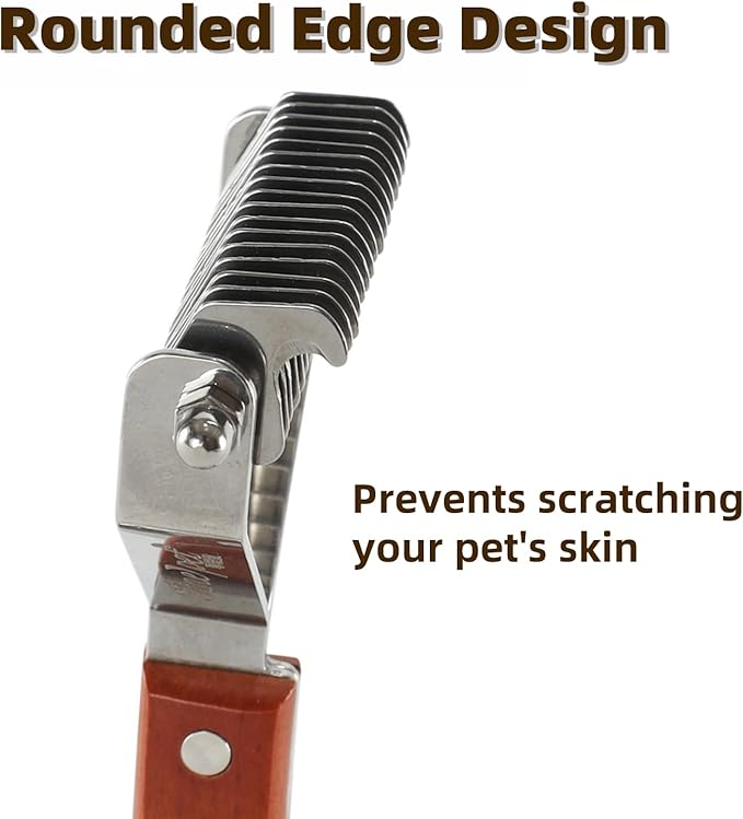 • With rounded stainless-steel teeth, allows you remove mats, tangles, knots, loose hair easily and safely without irritation or scratching