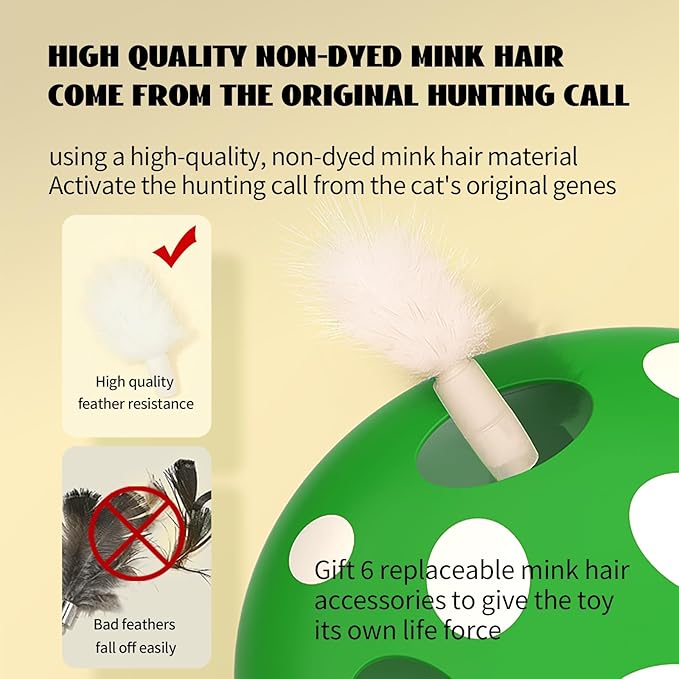 - 【Cute Mushroom Shape】The cat interactive toys are designed in a natural mushroom shape, and the rounded appearance prevents sharp edges from hurting the cat, the close to the natural appearance of the shape of both the cat can feel the natural atmosphere in the home, so that the cat has a primitive feeling of returning to nature