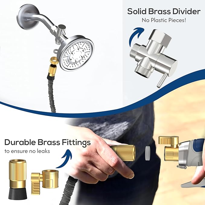 - Easy-to-Use Shower Diverter - Seamlessly switch water flows with our adjustable shower diverter. With our Shower diverter switch between your regular shower head and the handheld shower hose attachment. No disassembling required, use your regular shower head and switch the shower diverter to use your shower hose attachment for a variety of tasks.