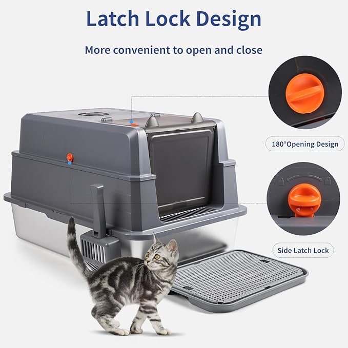 - Odorless & Easy to Clean: There is a deodorizing space inside for placing a deodorizer bag to quickly absorb odors. This XXXL cat litter box is made with premium stainless steel,Unlike plastic litter boxes, this enclosed cat litter box does not absorb any unpleasant smells, its smooth, rust-proof, non-stick surface makes cleaning a breeze