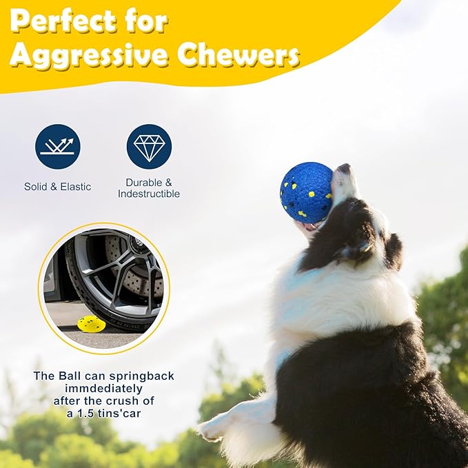 2 Pack Dog Balls Indestructible Tennis Balls for Dogs Durable Bouncy Dog Toy Balls for Aggressive Chewers Interactive Dog Toys for Water Toy Fetch Balls (Yellow,Blue)