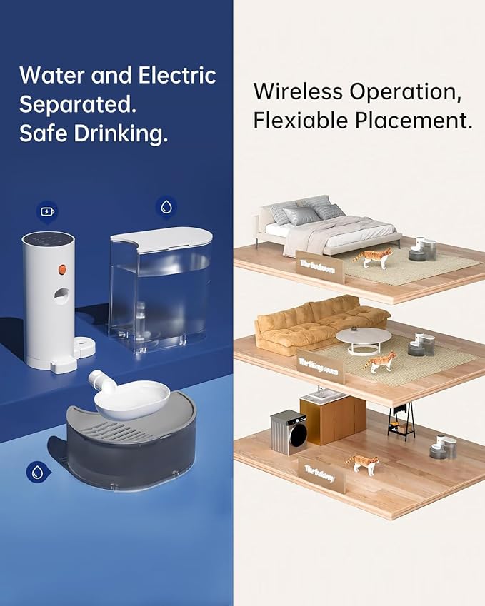 - 【Self-refill Water Design】This smart pet water fountain has the unique patent design of 2 water tank and drinking cup separation.No circulating filtered water,regularly refill water.Every sip is fresh,your pets will start to drink more water,even perfect for picky pets.