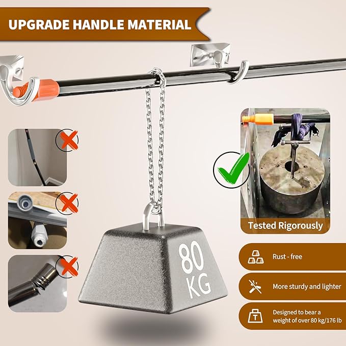 - 【🛡️ Reusable & Durable and easy to clean】4 adjustable handle sections (up to 58") made of reinforced stainless steel (200+ lbs pressure tested) with anti-slip grip. High-quality rubber and durable metal ensure that the carpet rake teeth, made of various materials, can be used repeatedly without wearing out. The soft rubber bristles are both waterproof and quick-drying, making them very easy to clean.
