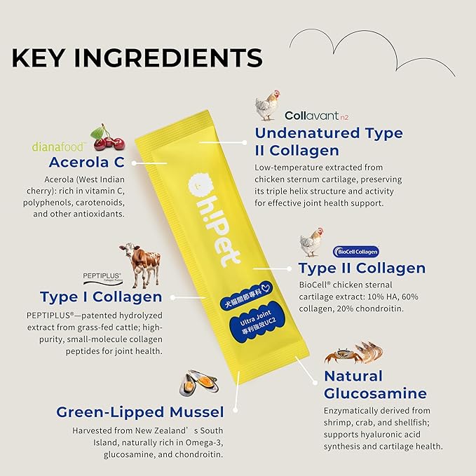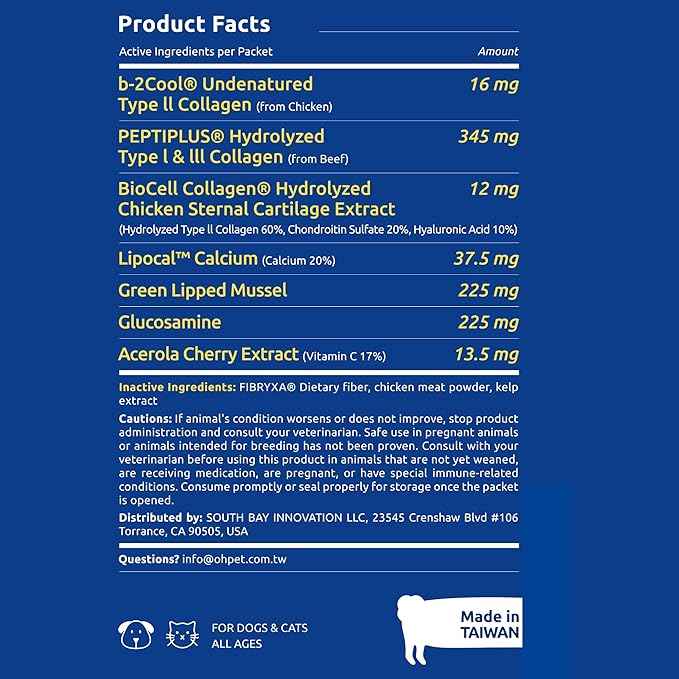 Oh!Pet® Hip & Joint Glucosamine for Dogs & Cats – UC2 & Collagen (30 Packets)