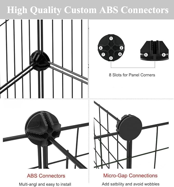 - EASY TO ASSEMBLE - With custom ABS connectors, you can easily build the wire mesh into a variety of shapes and heights. The nylon tie that comes with the product makes the fence even stronger. In addition to pet playpen, you can also assemble storage shelves for use