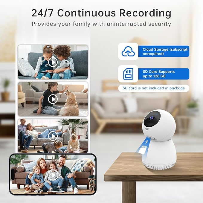 - 【Support Pay to use Cloud&SD Card Storage】Indoor security camera supports two storage modes: cloud storage and microSD card storage (supports up to 128G capacity SD card). With cloud storage encryption technology, data privacy is protected at the highest level. No one can access the cat camera information without your permission. Wireless camera indoor supports recording and saving videos 24/7, making playback easier.(Cloud storage requires a fee to use)