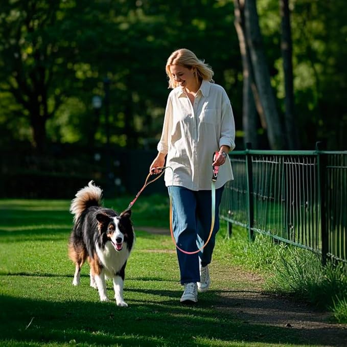 - Comfortably Padded Traffic Handle for Control. Softly padded handle dog leash makes long walks comfortable and will not strain your hands when your dog pulls. The handle near the clip is great for more control and safety when you need to keep your dog closer to you in traffic or walking through the crowds, and the hands-free feature can switch to a traffic handle of the training dog leash when needed
