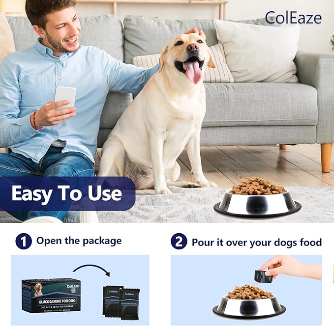 - [DOG HIP & JOINT SUPPLEMENT] Glucosamine for dog delivers a powerful blend to support cartilage health. Each sachet of dog joint supplement powder provides deep nourishment for flexible movement across all breeds.