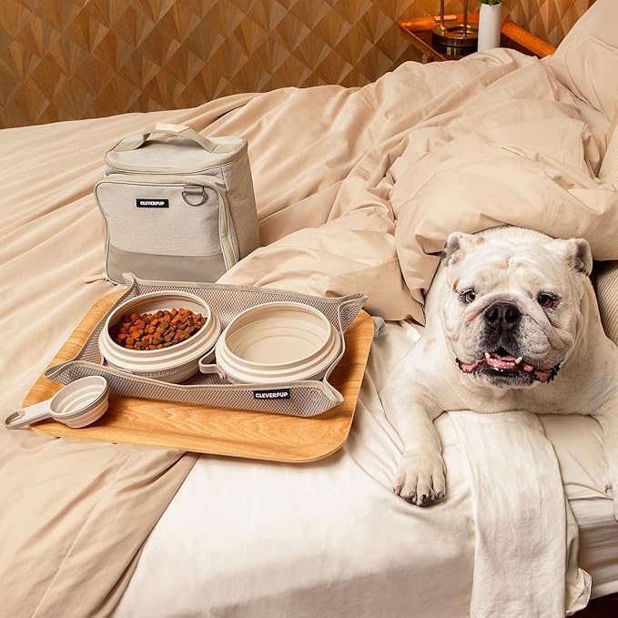 - ALL-IN-ONE TRAVEL KIT - The perfect solution for stress-free meals on the go with your pup. Includes everything you need: food-safe storage containers, collapsible bowls, feeding tray, treat pocket, and insulated bag for ultimate convenience.
