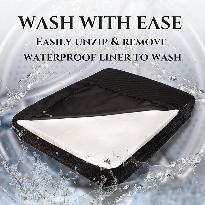 - ๐๐๐ญ๐๐ซ๐ฉ๐ซ๐จ๐จ๐ ๐๐ง๐ ๐๐๐ฌ๐ฒ ๐ญ๐จ ๐๐๐ซ๐ ๐๐ข๐ง๐๐ซ: Our plush dog bed is thoughtfully designed with a machine-washable cover that is securely encased in a sturdy, waterproof liner. This innovative construction offers comprehensive protection for the plush foam core, guarding against spills, accidental messes, and moisture damage, ensuring that your pet's sleeping environment remains clean and inviting.