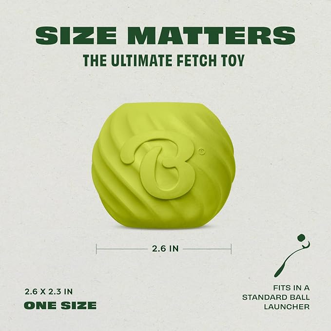• PERFECT FOR FETCH: This ball has an unpredictable bounce and fits in a standard ball-launcher when it’s time to go long.
