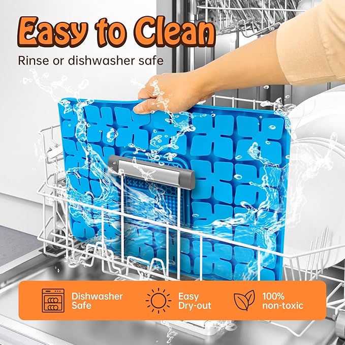 - 【Built Tough & Travel Ready】Engineered for durabilityThis heavy-duty dog lick mat withstands chewing attempts, resists damage, and easily rinses clean. It folds compactly for storage or trips – a truly versatile feeding solution.