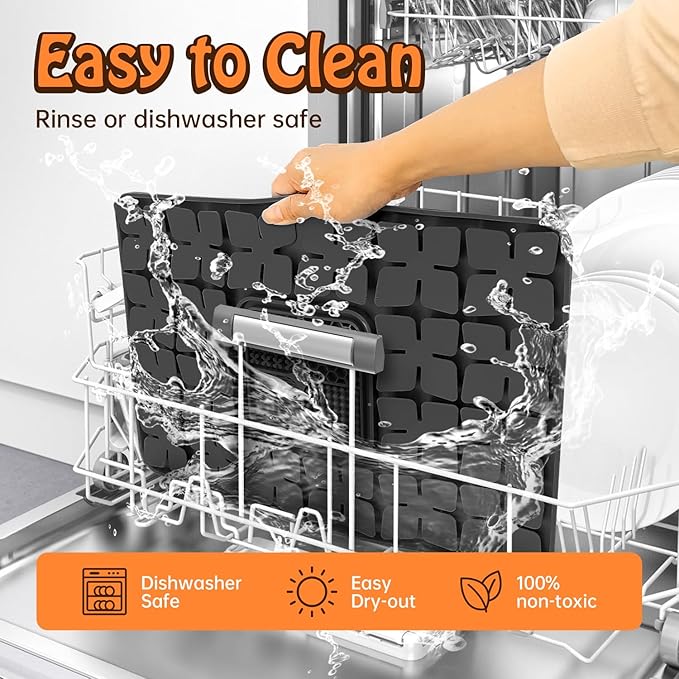 - 【Ultimate Stability】106 Suction Cups (1.92 lbs): Weighing 1.92 lbs and featuring 106 powerful suction cups, this heavy-duty dog food mat stays put! Enjoy hassle-free feeding – no more chasing a sliding mat across the floor.