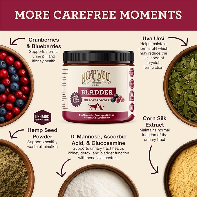Hemp Well Bladder Support Powder - Urinary Health Support for Dogs & Cats, 2.11 oz. (2 Pack)